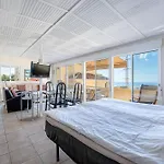 The apartment offers convenient self-catering facilities, including an equipped kitchenette with a fridge, an oven, and kitchenware. Guests can relax with a drink on a patio while enjoying seaside views of the sea.